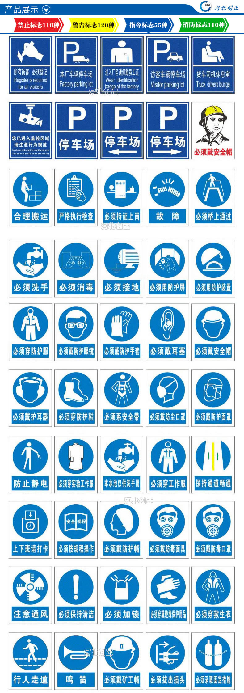 2、產(chǎn)品內(nèi)容:禁止、指令、提示、線路相位、消防、通信、交通等。