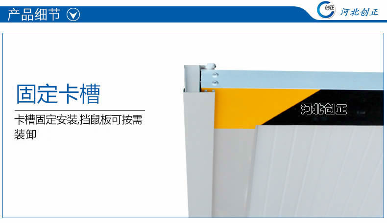 擋鼠板高度一般為500mm。可定做400mm,450mm600mm,其中500mm較為常用。卡槽和擋板的高度相同。
